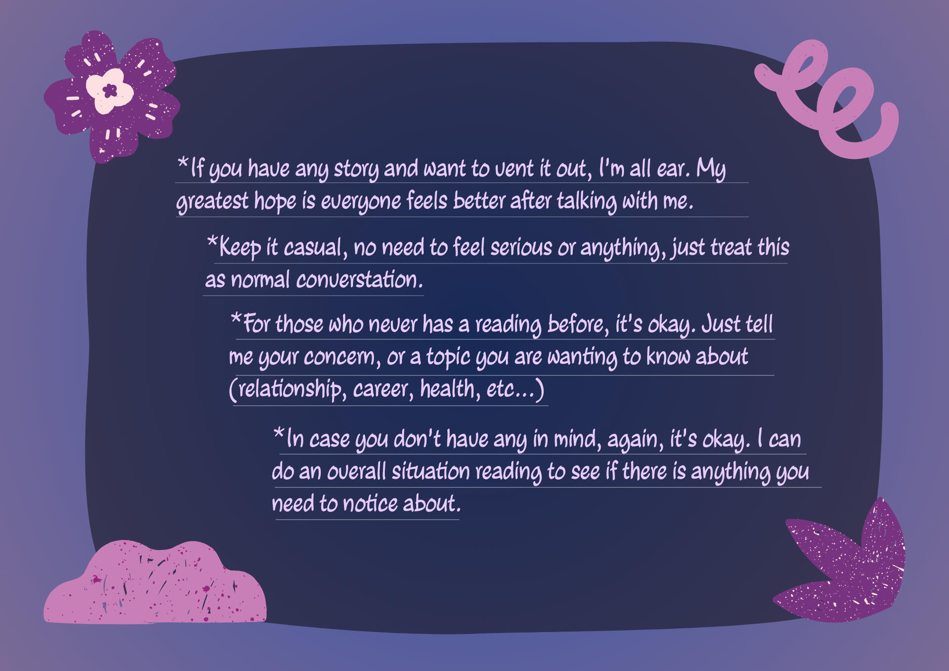 Please fill in this form here, and remember that this type of reading will be deliver slowly, no delivery deadline and will be picked randomly